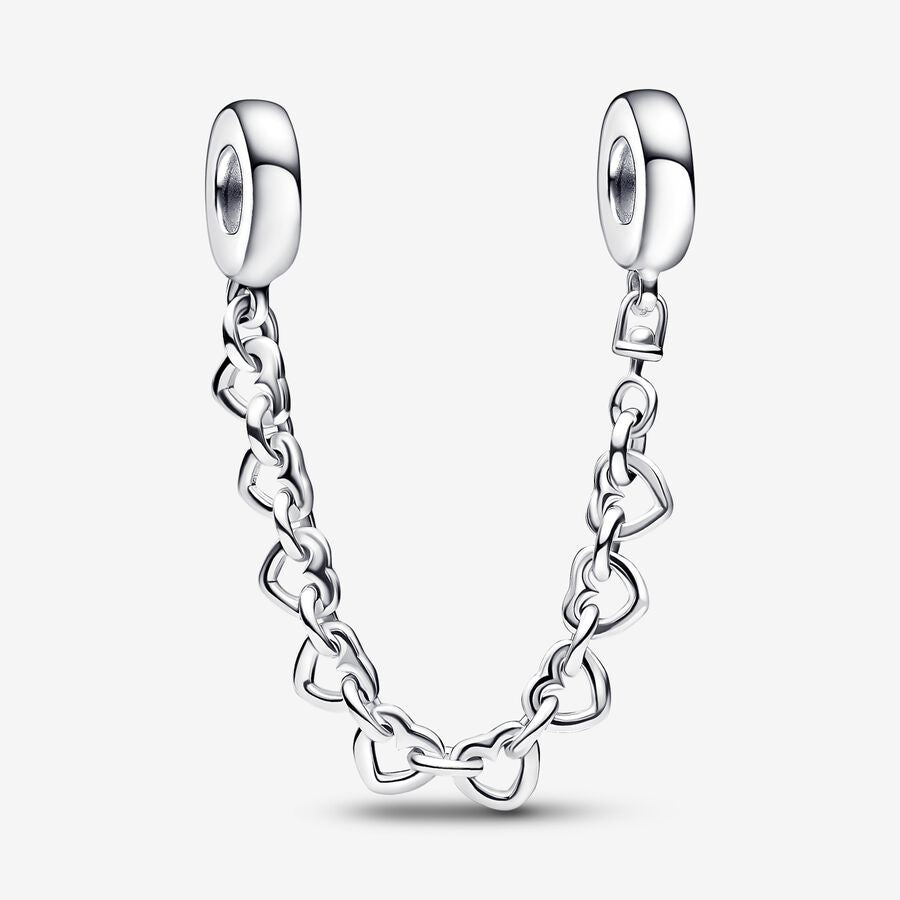 Protege tus charms con elegancia con la Cadena de Seguridad Corazones Enlazados. Esta renovada versión se presenta con eslabones redondos y en forma de corazón de plata de primera ley pulida que se duplican como símbolo de amor. La Cadena de Seguridad asegurará tus charms ante una apertura accidental del cierre de tu pulsera y evitará así que la pierdas. Además, te permitirá abrocharla de una manera más sencilla.