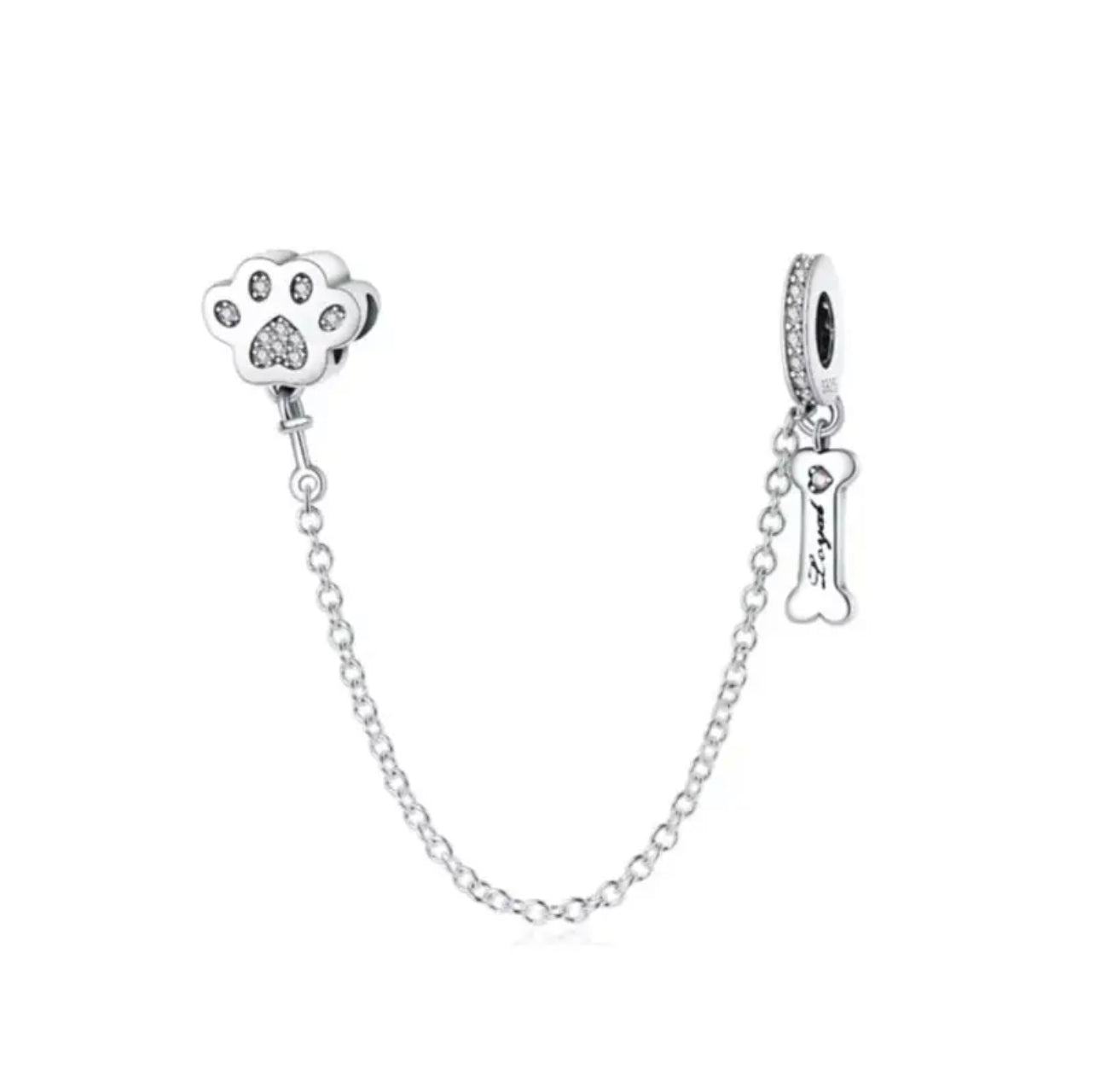 Esta cadena de seguridad tiene una huella de perro y un hueso que dimboliza el amor por nuestra mascota. Plata s925