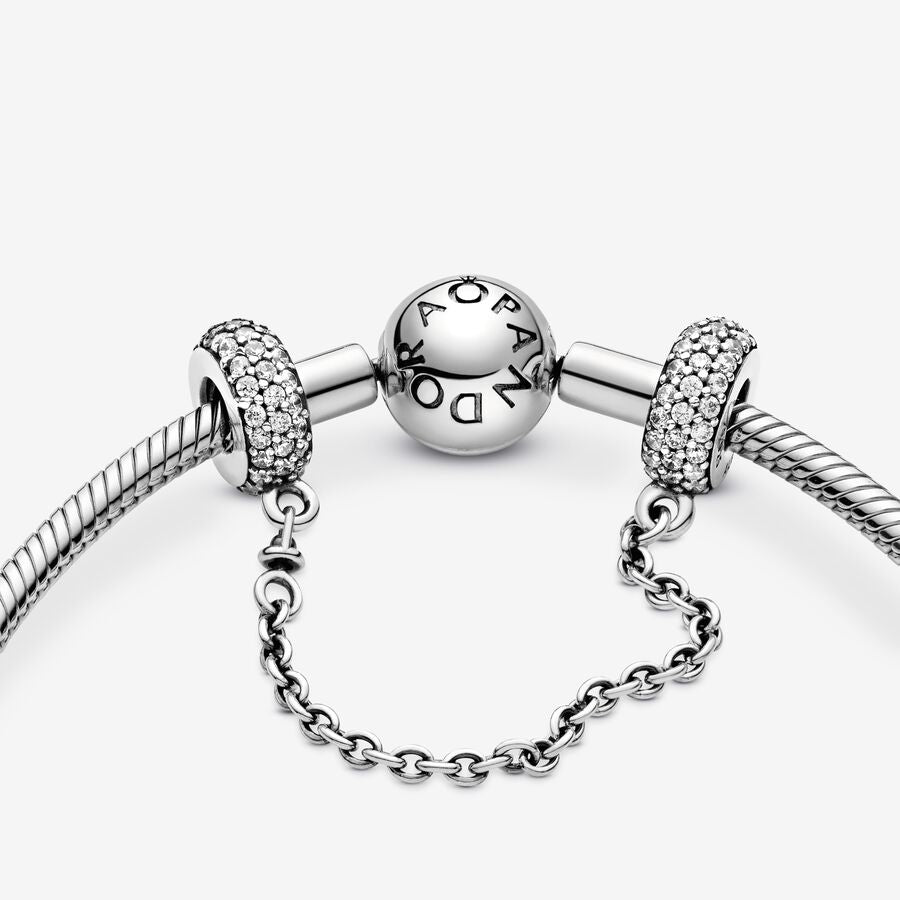 Cadena de seguridad en plata de ley y circonitas cúbicas transparentes