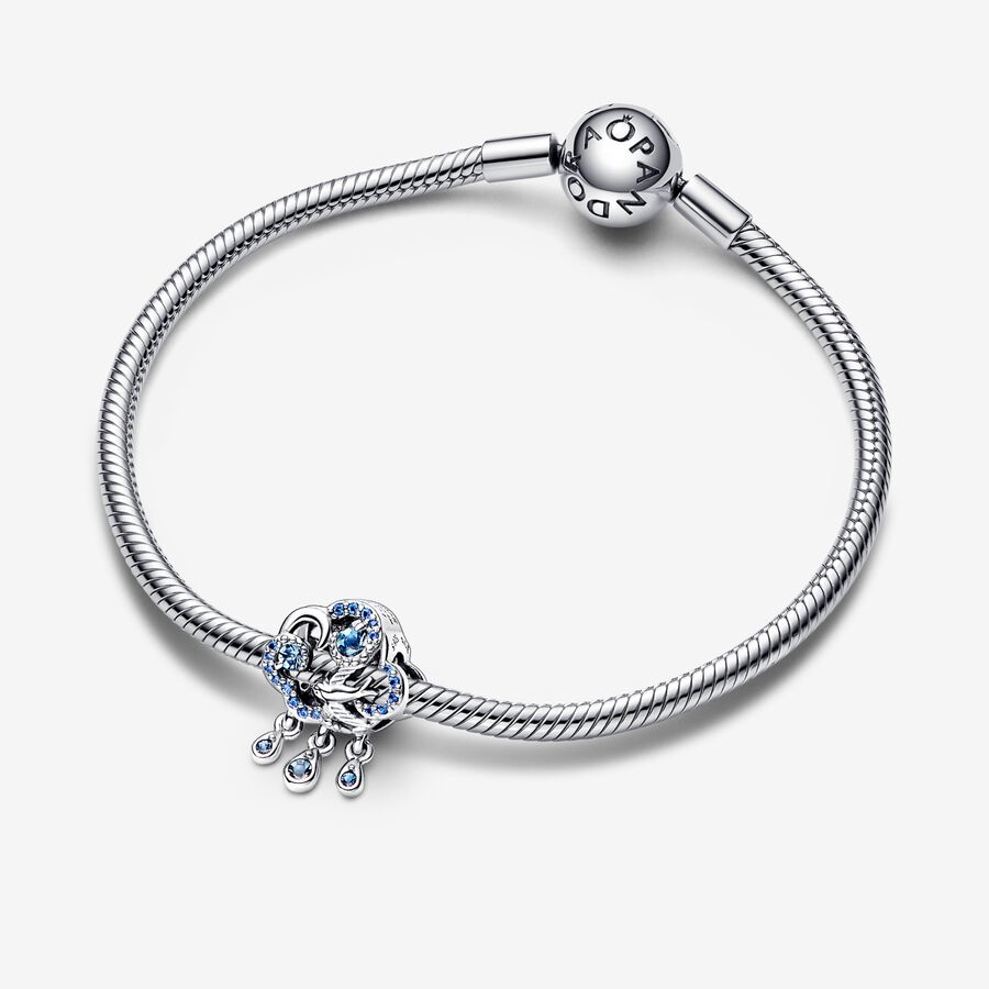 Sumérgete en la primavera con nuestro Charm Nube y Golondrina. Este charm en plata de primera ley presenta una intrincada escena de nubes arremolinadas y embellecidas con golondrinas volando y brillante pavé en varios tonos de azul. Tres gotas de lluvia, que cuelgan de la nube, se han decorado con cristales sintéticos de color azul. Además, presenta la inscripción "Let your dreams be your wings" (Permite que tus sueños sean tus alas), así que póntelo como recordatorio diario de todas las posibilidades inspiradoras que se te presentan.