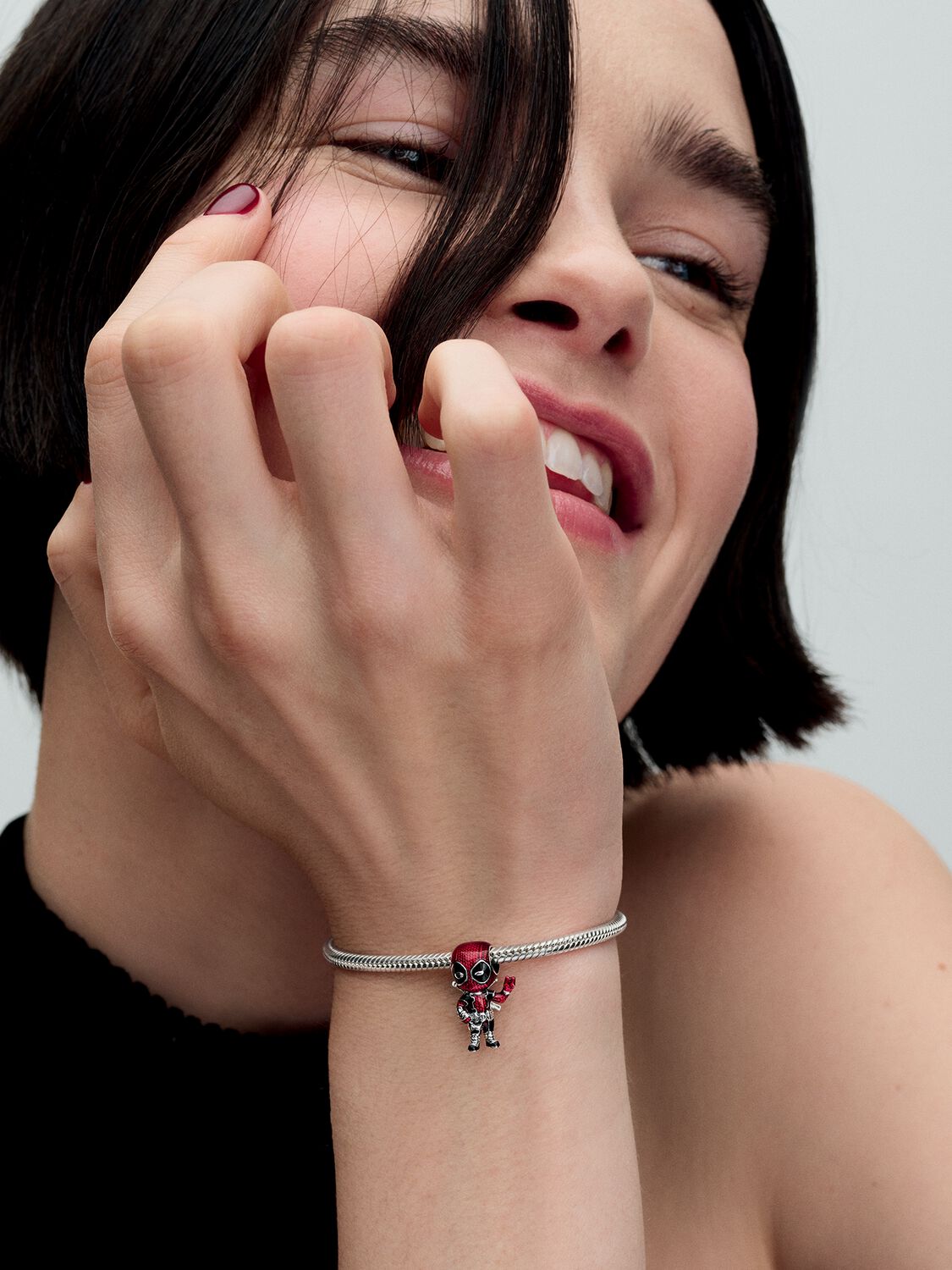 Rinde homenaje a un personaje valiente y tontorrón con el Charm Deadpool de Marvel. Deadpool de Marvel se presenta en plata de primera ley con esmalte de efecto metálico en técnica basse-taille que revela un patrón tejido debajo del traje de Deadpool. Los intrincados detalles dan vida a este charm, mostrando a Deadpool en acción con los dedos de la mano formando el signo de la paz. Ninguna colección de amantes de Marvel estará completa sin este charm que celebra al valiente y tontorrón personaje de Deadpool.