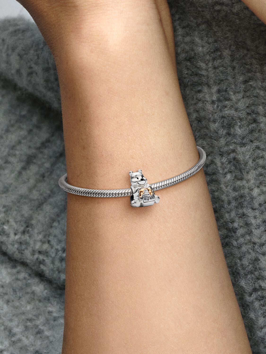 Celebra 100 años de maravillas con el Charm Colgante con Diamante Creado Sintético Winnie the Pooh 100 Aniversario de Disney Este nuevo charm de Disney100 de la colección Disney x Pandora se presenta con un diamante sintético con talla brillante. Este charm de Winnie the Pooh seguramente será tan especial para ti como la dulce y dorada miel para Wininie. En este caso, su miel es de oro macizo de segunda ley de 14k, lo que convierte a este charm de edición limitada un bello fragmento de la historia de Disney preparada para unirse a tu colección.