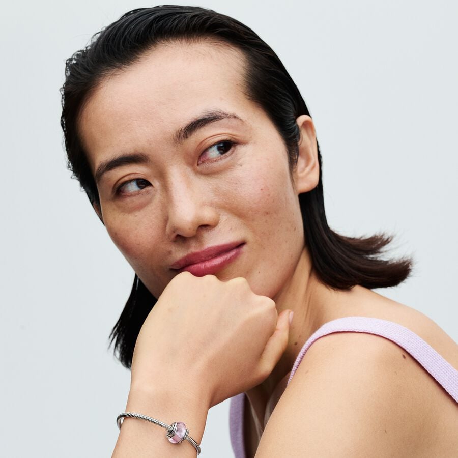 Elaborado en plata de ley, el charm de cristal de Murano rosa con círculo captura elegantemente el amor infinito. El cristal de Murano rosa está adornado con una lámina plateada en el interior, lo que añade una capa extra de brillo. Las líneas circulares asimétricas en el núcleo simbolizan el divertido entrelazamiento de formas, que recuerdan el vínculo eterno con los seres queridos. Abraza el simbolismo de los círculos con esta pieza especial, que celebra el amor duradero e incondicional que nos une a todos. Perfecto para quienes adoran los charms rosas de Pandora.