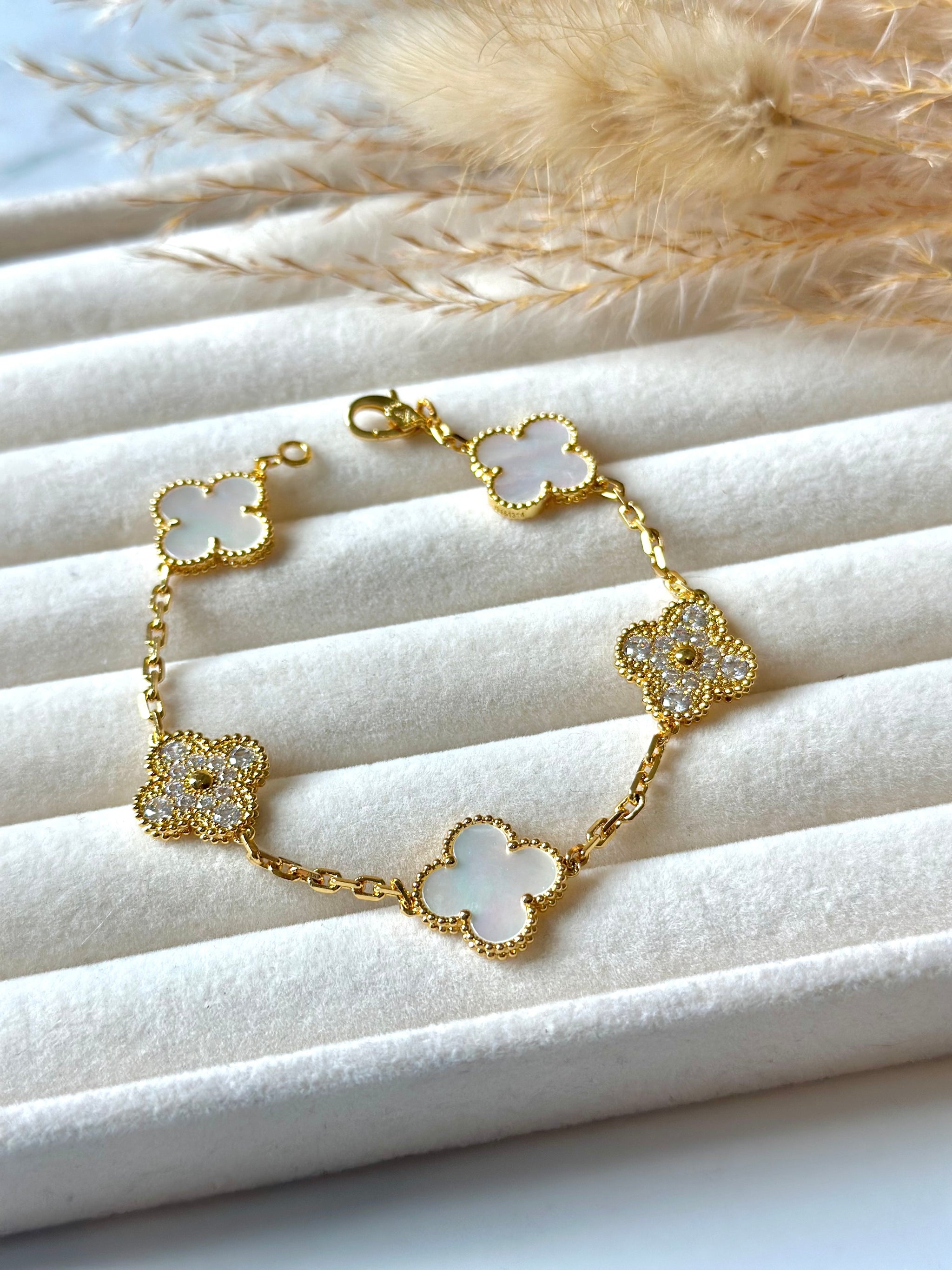 Pulsera Van Cleef Alhambra vintage 5 Tréboles Blanco y Dorado