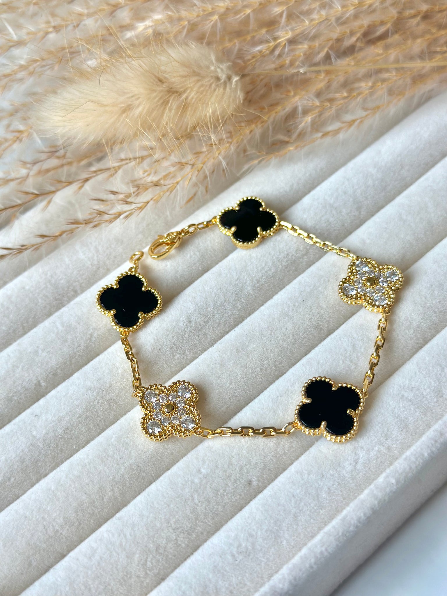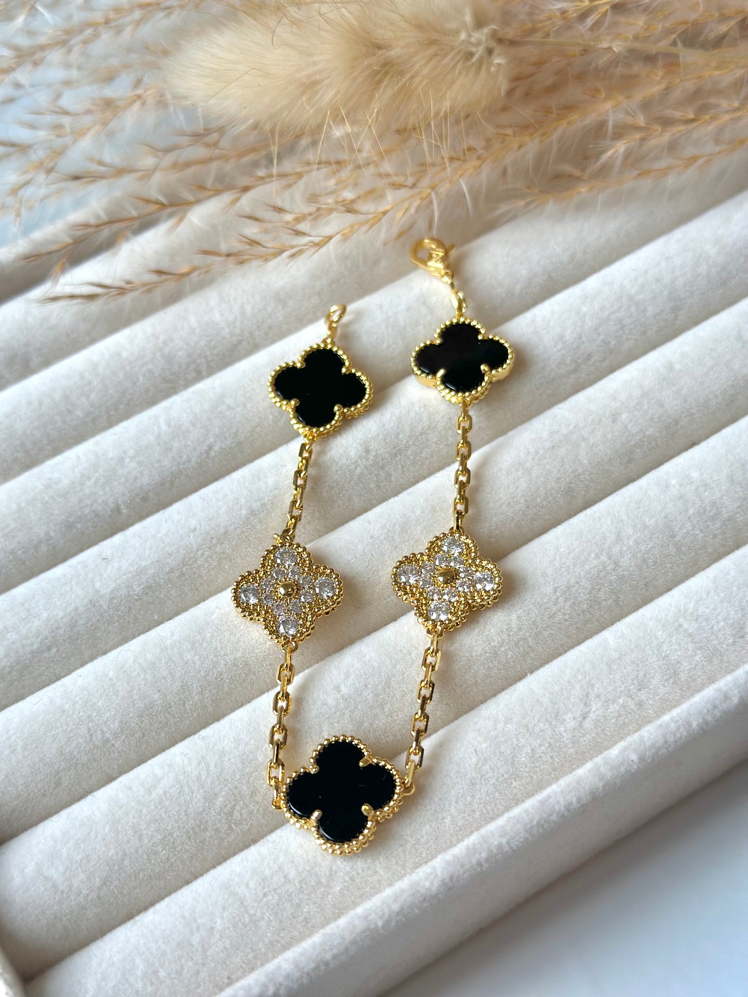 Pulsera Van Cleef Alhambra vintage 5 Tréboles Negro y Dorado